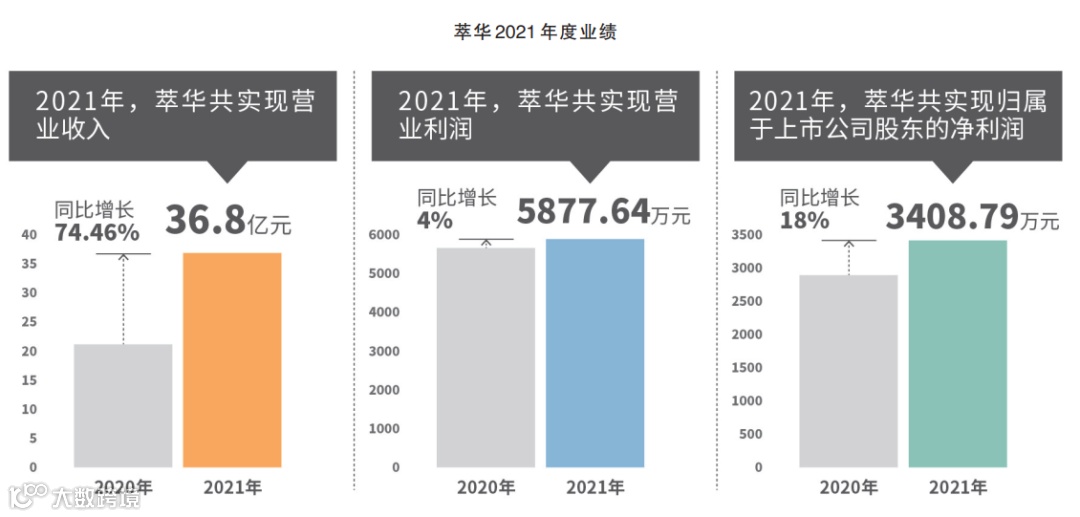 报告显示,报告期内,萃华实现总营业收入36.8亿元,较2020年同比增长74.46%;实现营业利润5877.64万元,较2020年同比增长4%;实现归属于上市公司股东的净利润3408.79万元,较2020年同比增长18%。