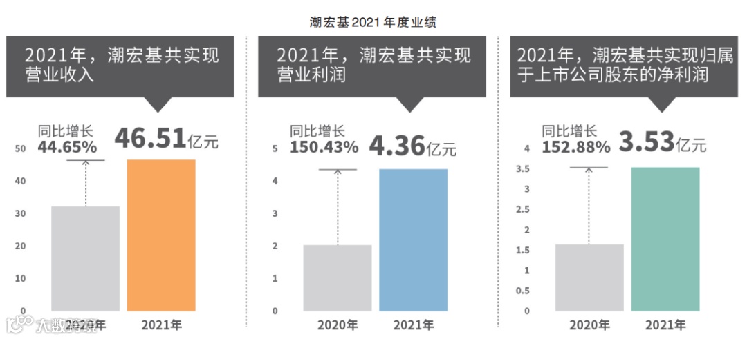 报告显示,2021年,潮宏基实现营业总收入46.51亿元,较2020年同比增长44.65%;实现营业利润4.36亿元,较2020年增长150.43%;实现归属于上市公司股东的净利润3.53亿元,较2020年同比增长152.88%。