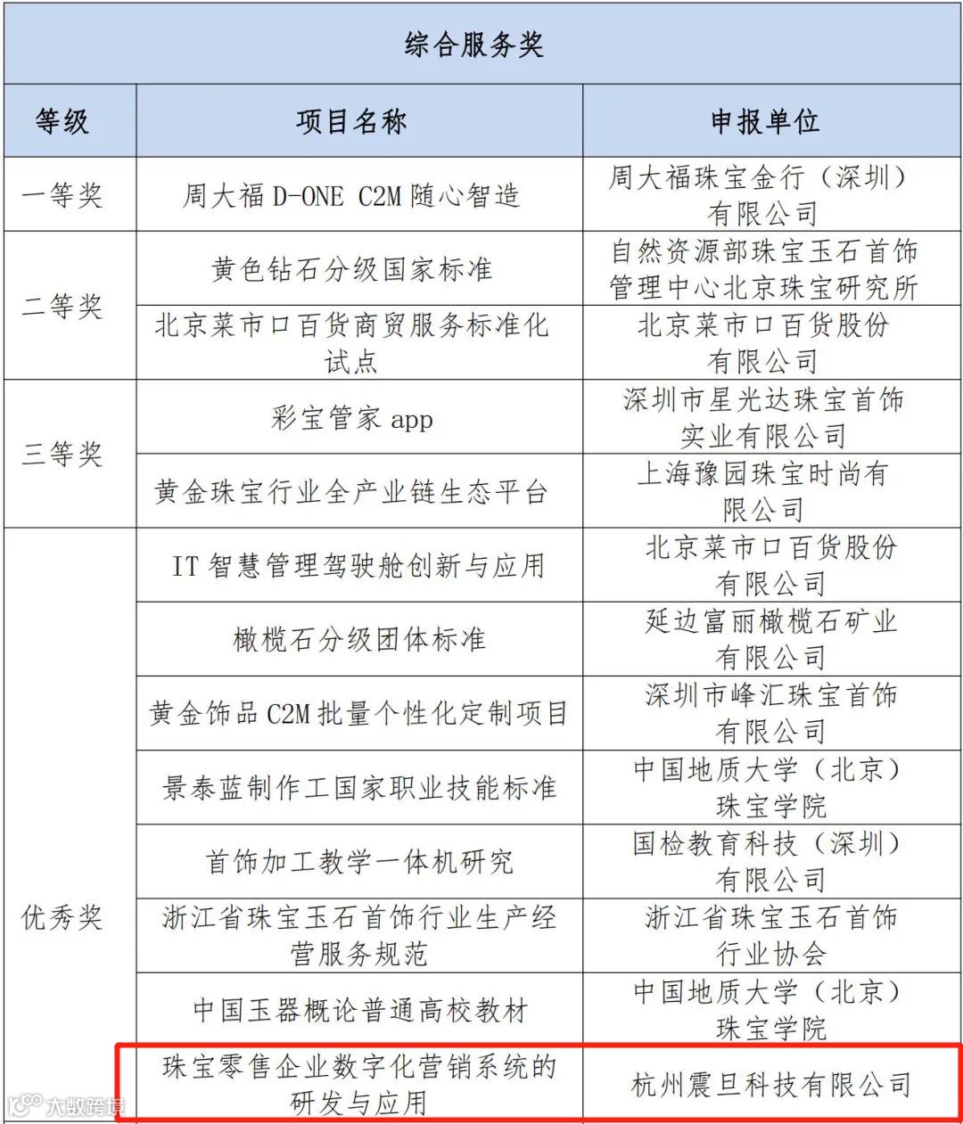 11月8日,2021中国珠宝玉石首饰行业协会科学技术奖评审结果揭晓。由杭州震旦科技有限公司(以下简称:震旦科技)申报的“珠宝零售企业数字化营销系统的研发与应用”项目荣获综合类优秀奖。