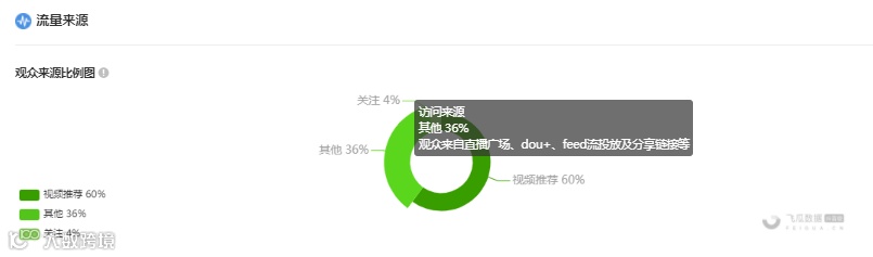 另外,此次直播的流量来自“其他”的占比36%,来自“关注”的仅4%,由此可见,账号想要提高直播间的转化,还是需要dou+和feed流的投放相结合。