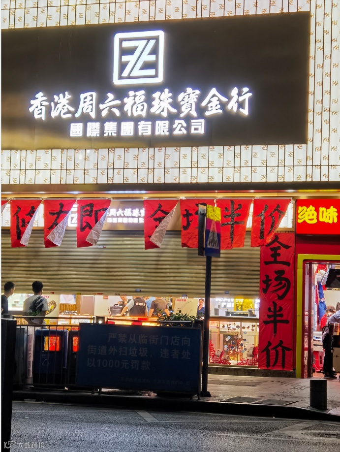 前段时间,深圳龙岗区横岗街道茂盛路1号志健时代广场F1层的一家“香港周六福珠宝金行国际集团有限公司”的铺面因侵权和违反广告法的相关规定,被执法人员依法查封。