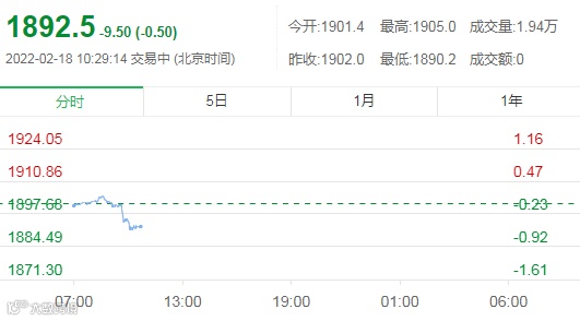 黄金价格自2021年6月以来首次触及1900美元,17日日涨幅超过1.5%,原因是俄罗斯、乌克兰和北约之间的地缘政治紧张局势升温,加大金价这一避险资产的买盘。金价本周涨幅累计超过2.0%,使金价两周内涨幅达到近5.0%。截止目前回落到为1892.5美元/盎司。