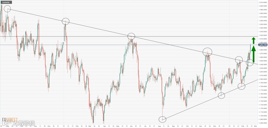 “多头现在可能将目标锁定在1900美元上方,并接近2021中期高位1915美元区域。”文章中写道。