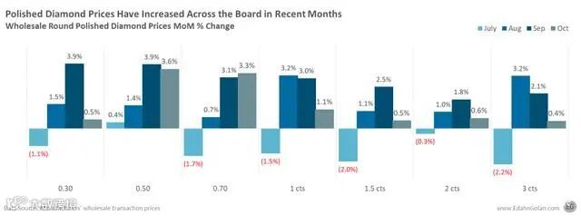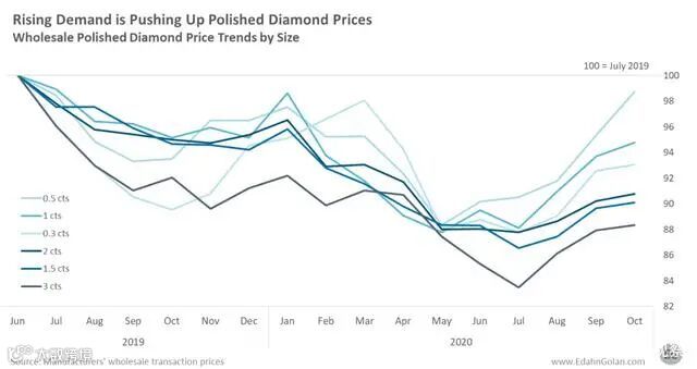 Edahn Golan认为,鉴于之前数月的价格变化趋势,以及目前临近年底消费旺季的客观事实,终端需求的增长会再次引起成品钻价格的上升。