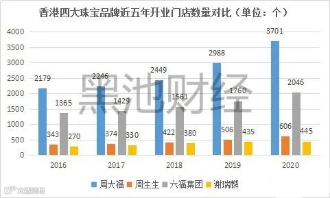 而从开店速度看,截至2020年9月30日止6个月,谢瑞麟新开设了48间新加盟店,周大福在中国内地净开设261个零售点,A股上市的老凤祥则同期净增402家营销网点。