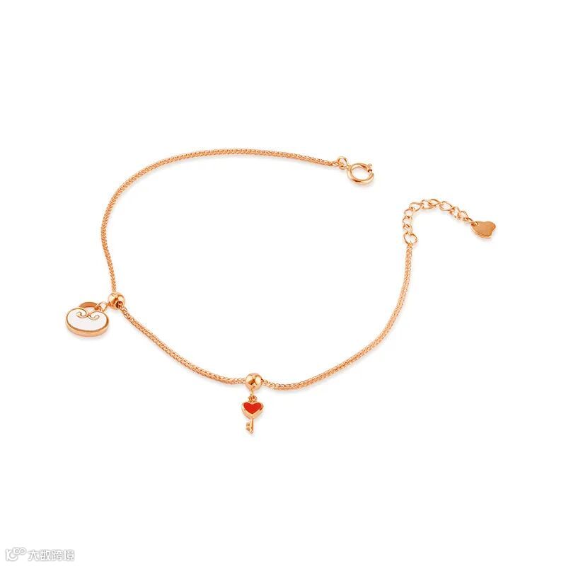 手链小巧精美,各色挂件展现不同的风韵格调,柔美纤细,亮眼出众。