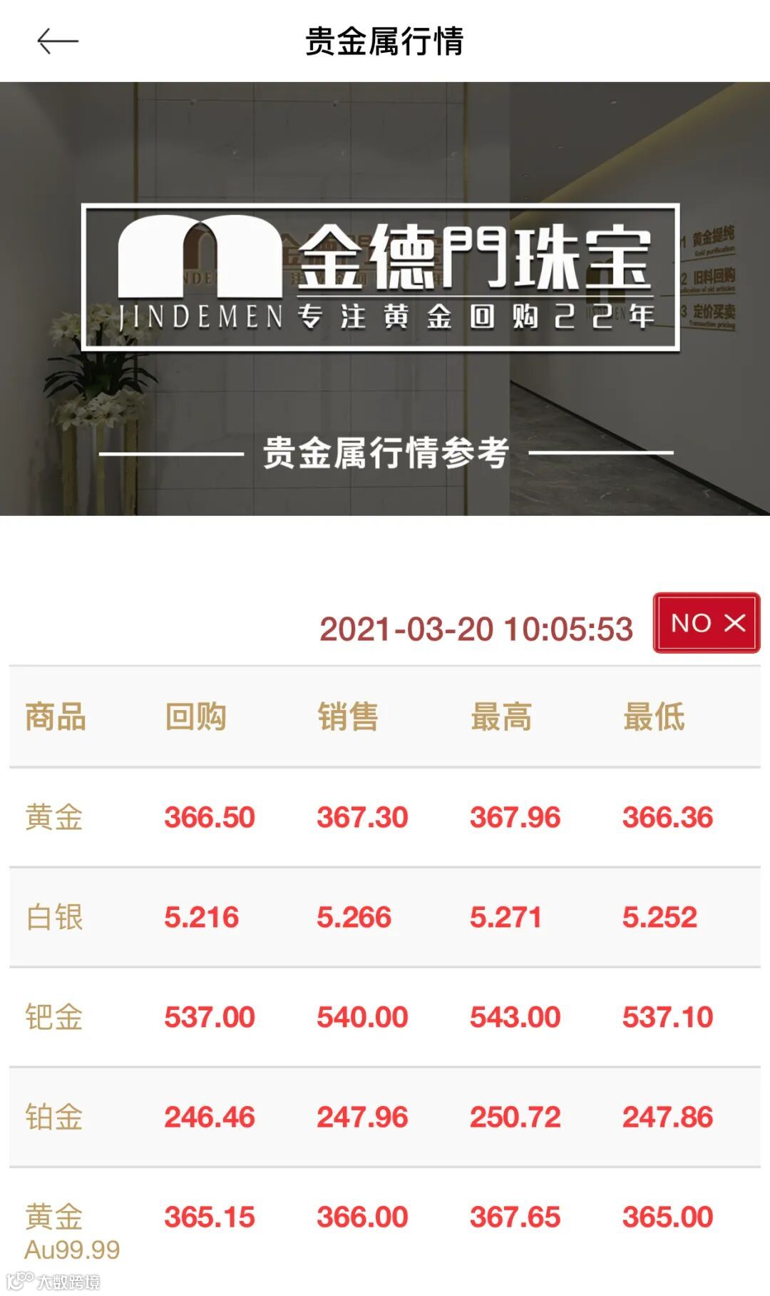 【2021-3-20】今日金价 宝物志