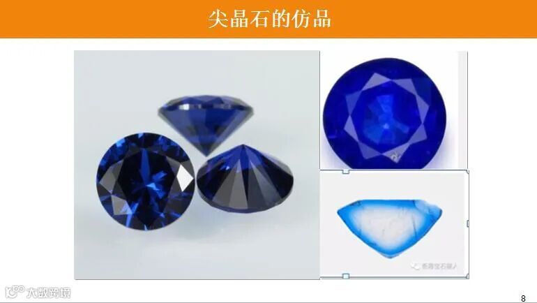 也正因为这两个原因,曾经在市场上非常难得的钴尖晶石,在本世纪初开始出现了大量“仿冒者”。生活中常见的有合成蓝色尖晶石和经过扩散处理后的无色尖晶石。