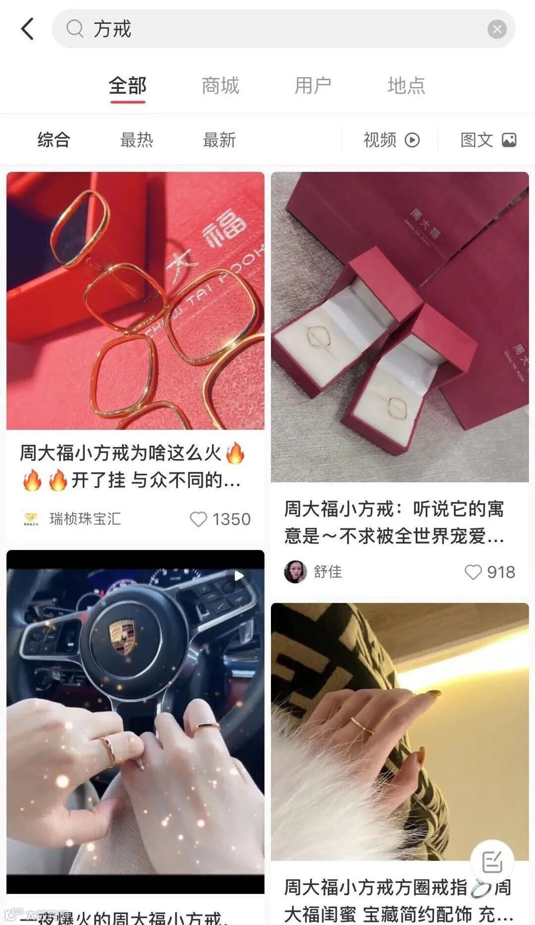 《95后时尚消费报告》显示,被称为“种草一代”的95后的典型特点是,喜欢在抖音、快手、小红书、B站、微博、知乎等社交平台看大量的内容、帖子,各类体验晒单、好物分享成为他们的最爱。周大福精准布局抖音、小红书等汇聚年轻人的平台,通过各类方戒种草帖让用户对产品有最基础的认知,突出方戒卖点,逐步引导消费者认可产品,最终转化购买。