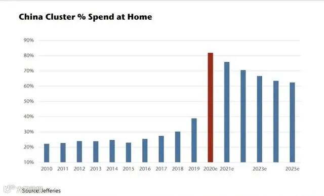 中国市场在全球奢侈品市场的整体份额也翻了一倍,从去年的约11%增长到2020年的20%。业内预计中国有望在2025年成为全球奢侈品市场份额最大的市场。