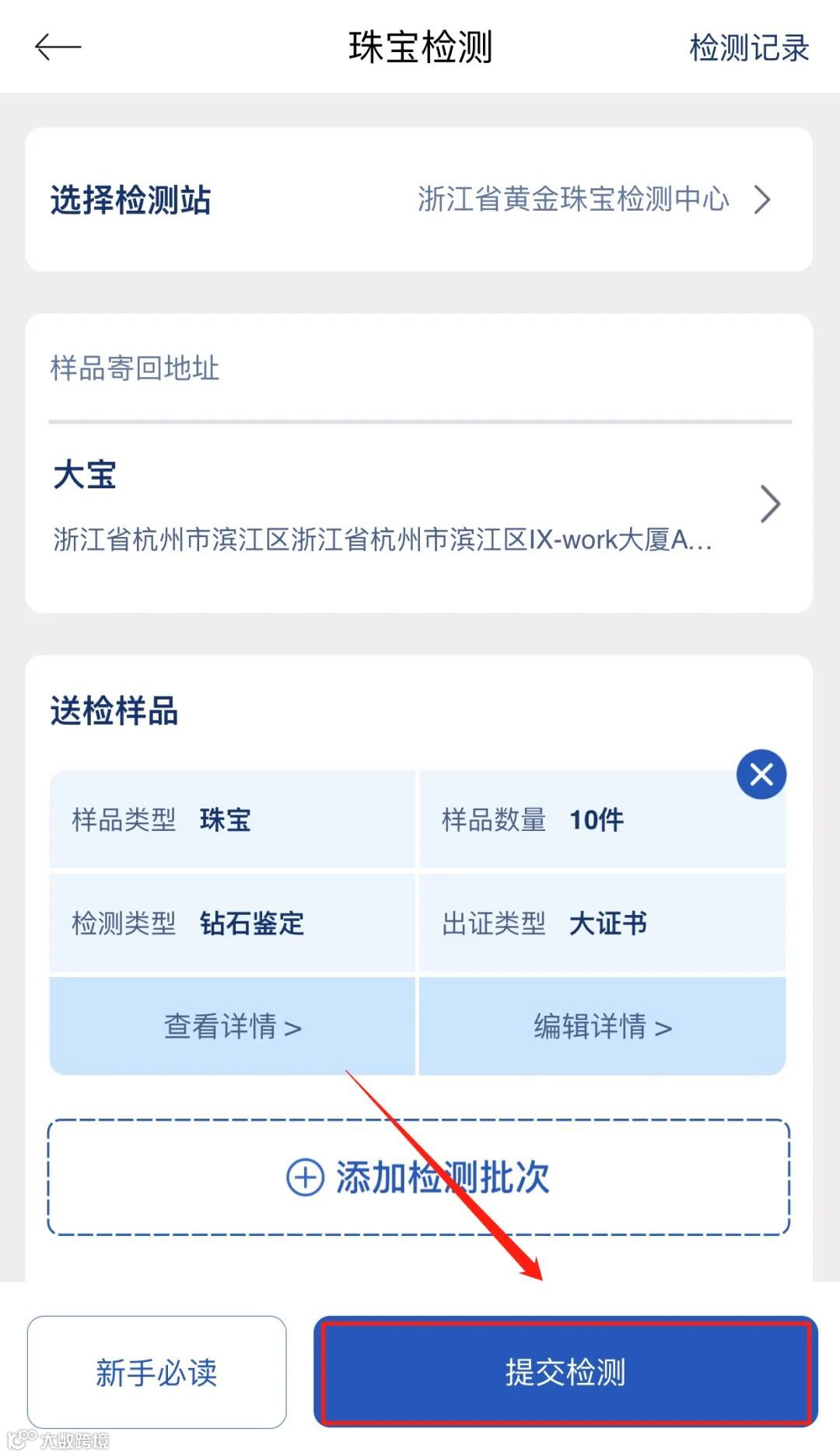 填写好样品寄回地址与送检样品的基本信息和检测需求,包括样品类型、样品数量、检测类型、出证类型、样品图片等,根据个人需求可选择“加急检测”。