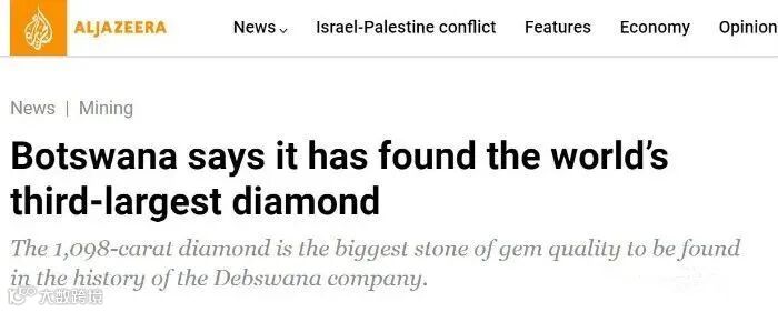 公司的代理董事总经理Lynette Armstrong说,这是公司运营50多年来开采出最大的钻石。“据我们初步分析,它大概是世界第三大钻石。”“这是一颗稀有而非凡的宝石,在博兹瓦纳目前的情况下,给这个正在挣扎的国家带来了希望。”