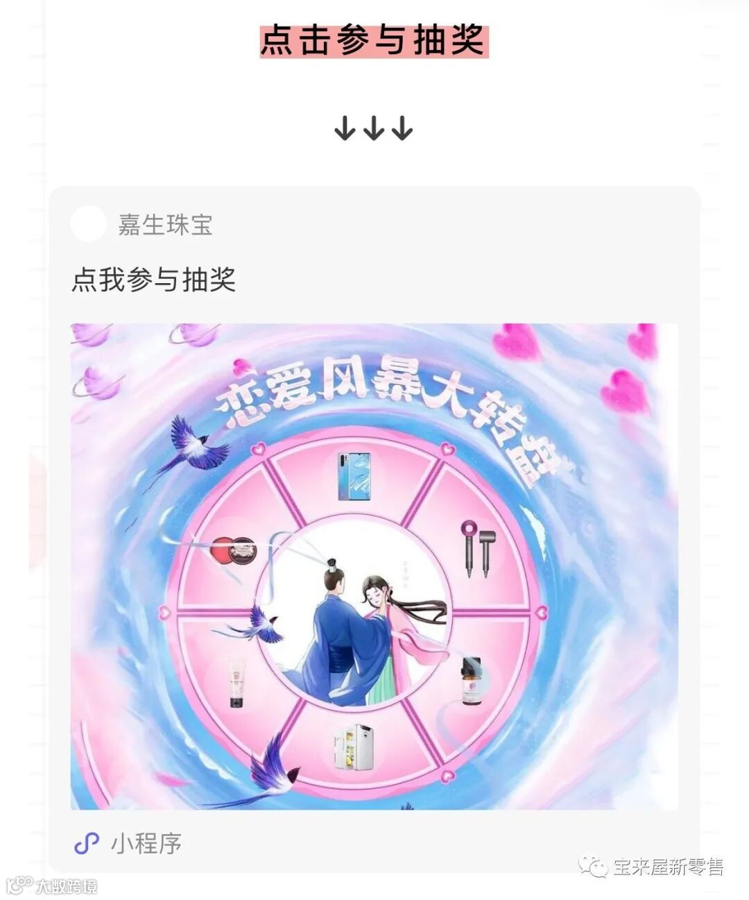 嘉兴周大生七夕的销售业绩创下新纪录,得益于老板的转型意识。选择宝来屋智慧营销系统+宝物志专业全案活动策划,开辟珠宝零售新场景,创新门店玩法。整合线上线下渠道,实现拓客、引流、转化。