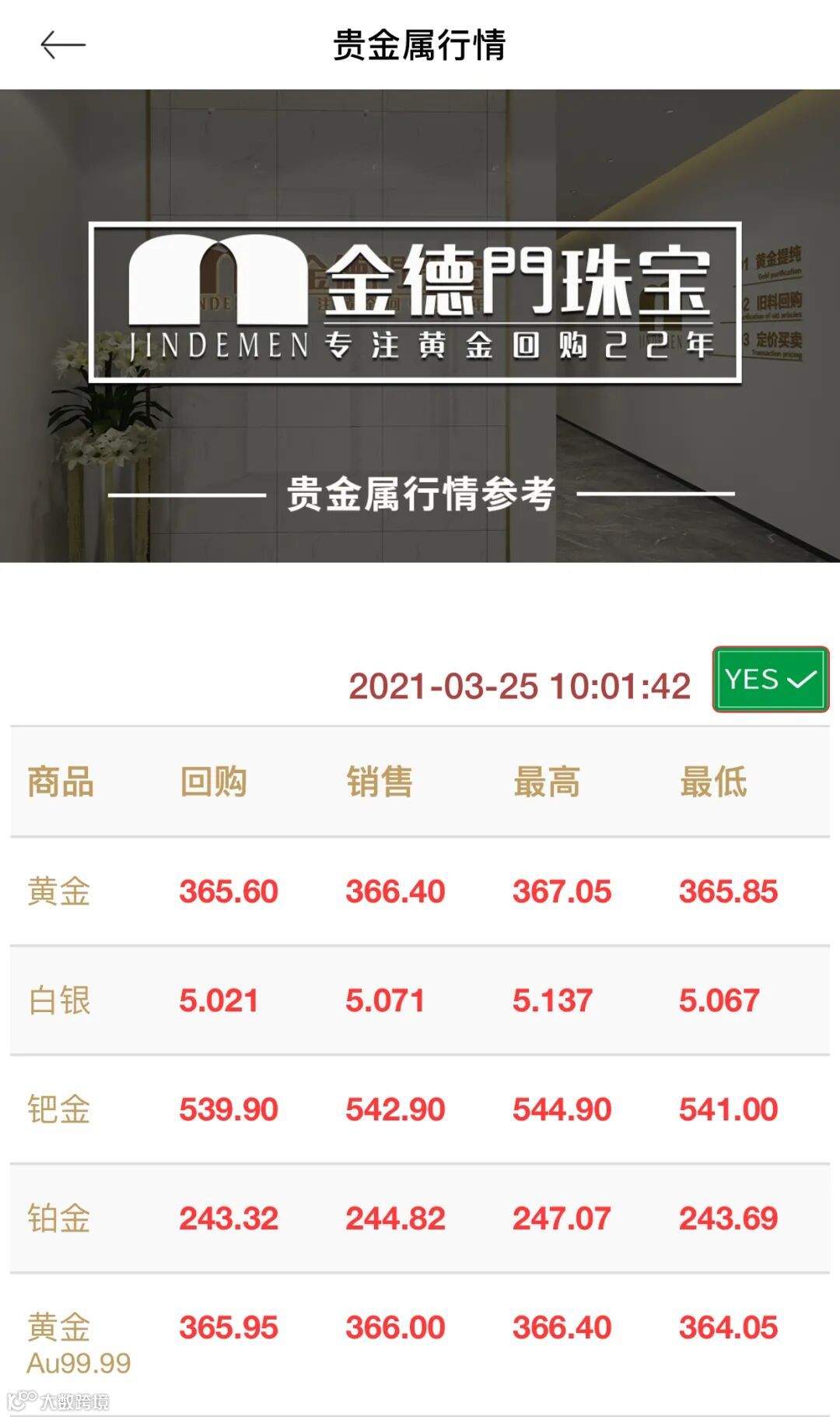 每日在线更新金价:来源于宝物志