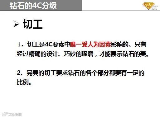 钻石的4C是判断一颗钻石价值与品质的衡量标准。“4C”即克拉(CARAT)、颜色(COLOUR)、净度(CLARITY)、切工(CUT)。