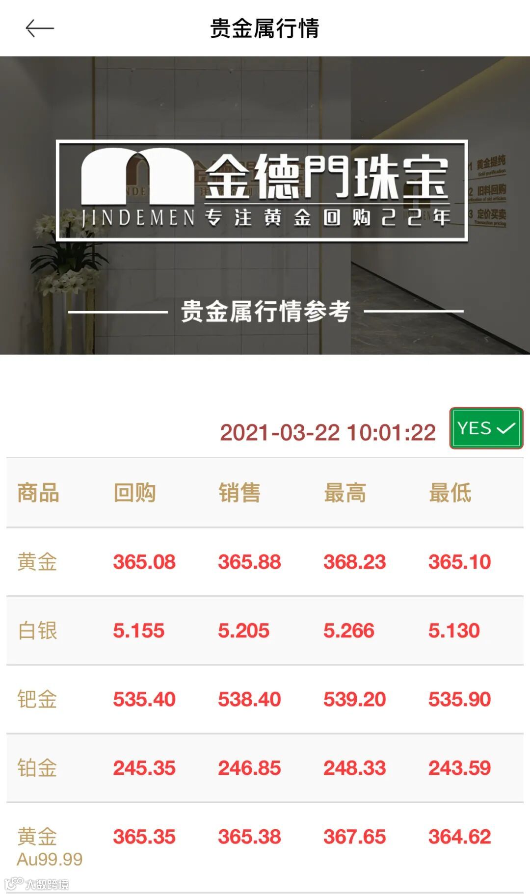 每日在线更新金价:来源于宝物志