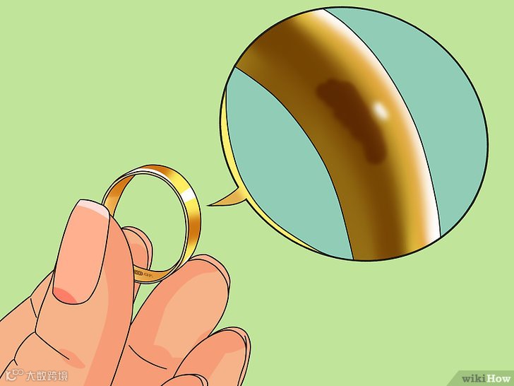 物品边缘变色或者有可疑的斑点通常就表明这个东西不是金的。但是某些不足24K的黄金,因为里面含有的廉价金属接触空气而氧化,时间一长可能会失去光泽。