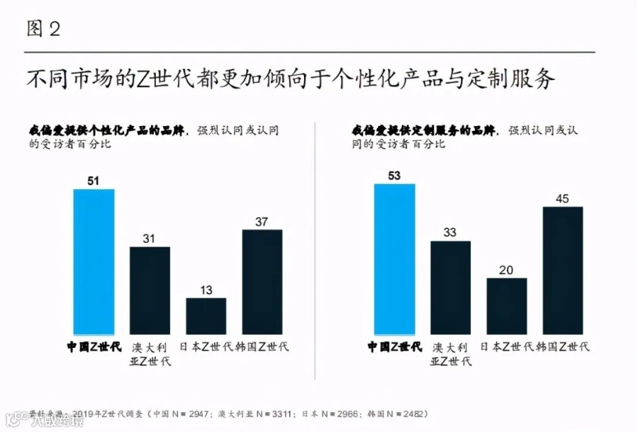 Z世代消费者中,逾半数(51%)偏爱提供个性化产品的品牌,53%会选择提供定制服务的品牌。相比澳大利亚、日本或韩国消费者,中国消费者更渴望彰显个性。