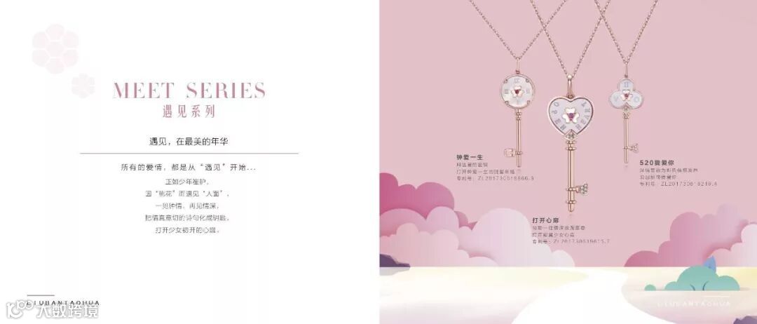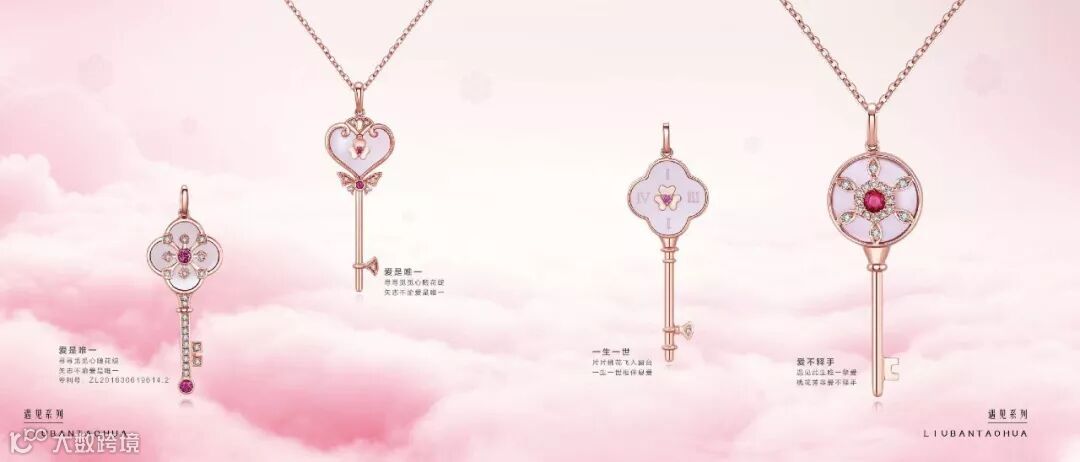 原创概念IP——“六瓣桃花”系列产品,以一颗心两个瓣,塑造“六瓣桃花”的品牌基因,让桃花成为女性青春年华的标识,像梵克雅宝的四叶草、卡地亚的猎豹一样的广为人知。