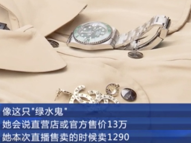 价钱也是那种“一眼就知道是假货”的价钱。官方售价13万的“绿水鬼”,直播间售价1290元,相当于以正品1%的价钱买假货。