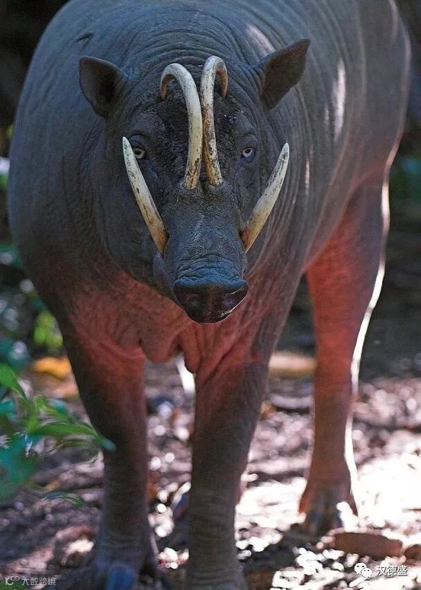 鹿豚又称猪鹿,只生活在印度尼西亚的部分岛屿上,是世界上最为奇特的动物之一。其最不寻常的特征在于有一副奇异弯曲的獠牙,下獠牙如野猪,突出唇外,挡在眼睛前方;上獠牙从口腔中向上长,穿出脸部,在眼睛斜前方弯曲向后。