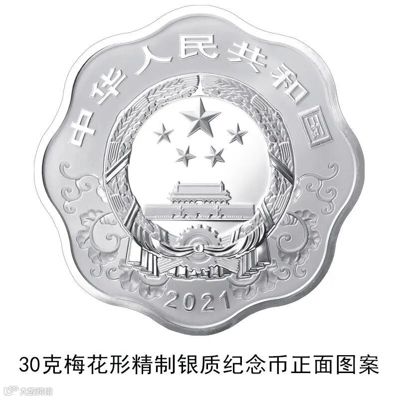 30克梅花形银质纪念币为精制币,含纯银30克,外接圆直径40毫米,面额10元,成色99.9%,最大发行量50000枚。