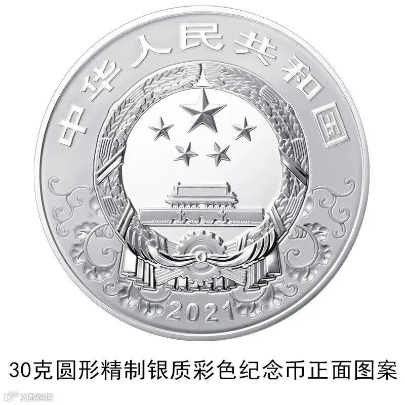 30克圆形银质彩色纪念币为精制币,含纯银30克,直径40毫米,面额10元,成色99.9%,最大发行量200000枚。