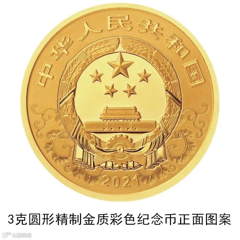 3克圆形金质彩色纪念币为精制币,含纯金3克,直径18毫米,面额50元,成色99.9%,最大发行量120000枚。