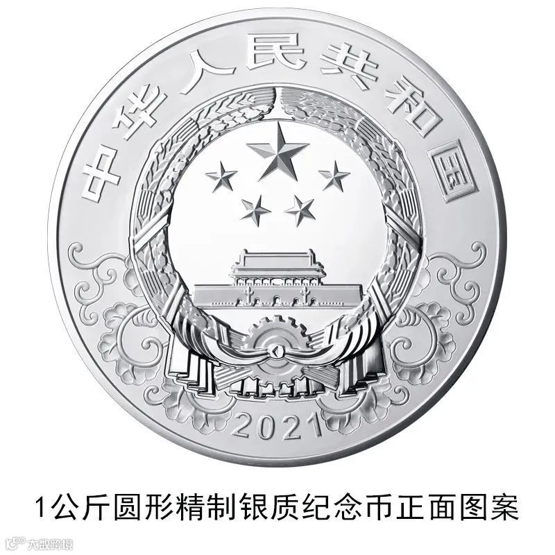 1公斤圆形银质纪念币为精制币,含纯银1公斤,直径100毫米,面额300元,成色99.9%,最大发行量5000枚。
