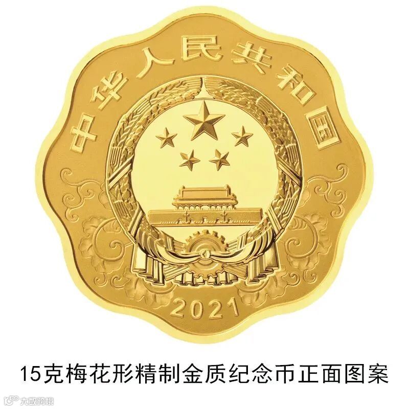 15克梅花形金质纪念币为精制币,含纯金15克,外接圆直径27毫米,面额200元,成色99.9%,最大发行量6000枚。
