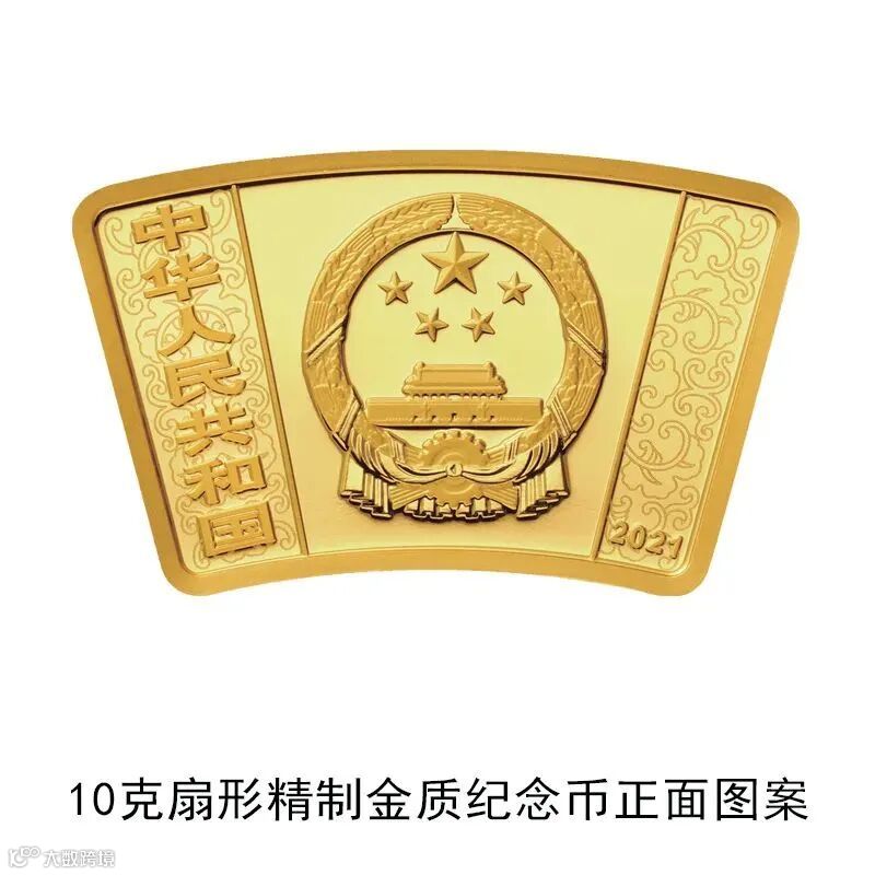 10克扇形金质纪念币为精制币,含纯金10克,外圆半径51毫米,内圆半径36毫米,圆心角30度,面额150元,成色99.9%,最大发行量10000枚。