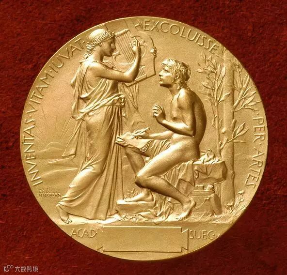 奖章正面是诺贝尔肖像,左边是诺贝尔的名字,右边是他的生卒年份,用罗马数字表示。