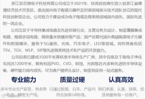 公司拥有完整的陶瓷多层生产线,具备LTCC&HTCC电路的生产能力,可生产微波镀层电路及芯片封装陶瓷管壳,电路最多层数可达50层,内层最小线宽线距达100um,表层最小线宽线距可达50um以下。