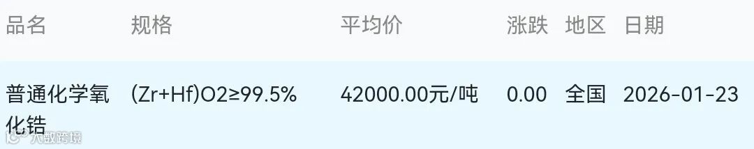 2026年01月23日氧化锆材料市场参考价: