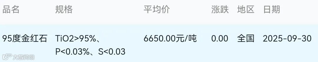 2025年09月30日金红石材料市场参考价: