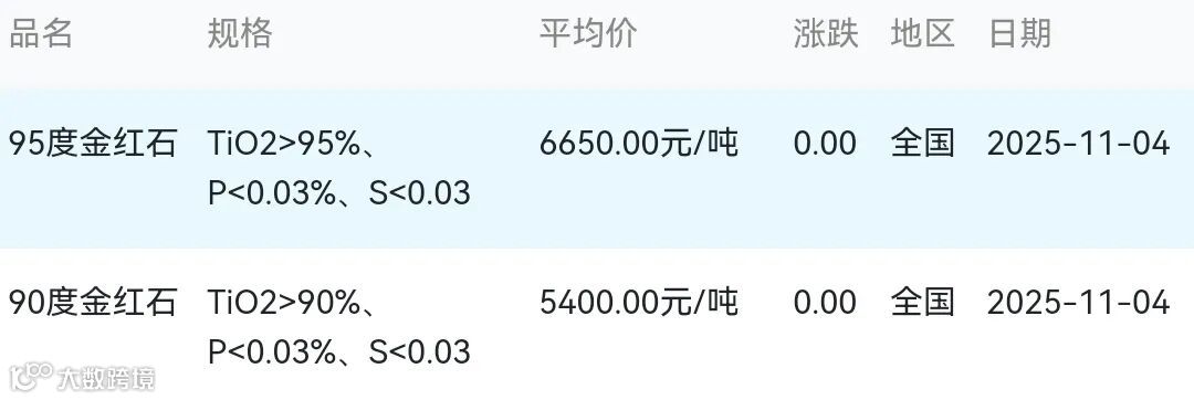 2025年11月04日金红石材料市场参考价: