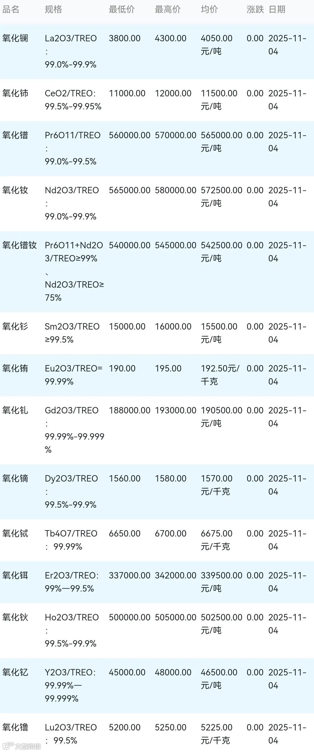 2025年11月04日稀土氧化物材料市场参考价: