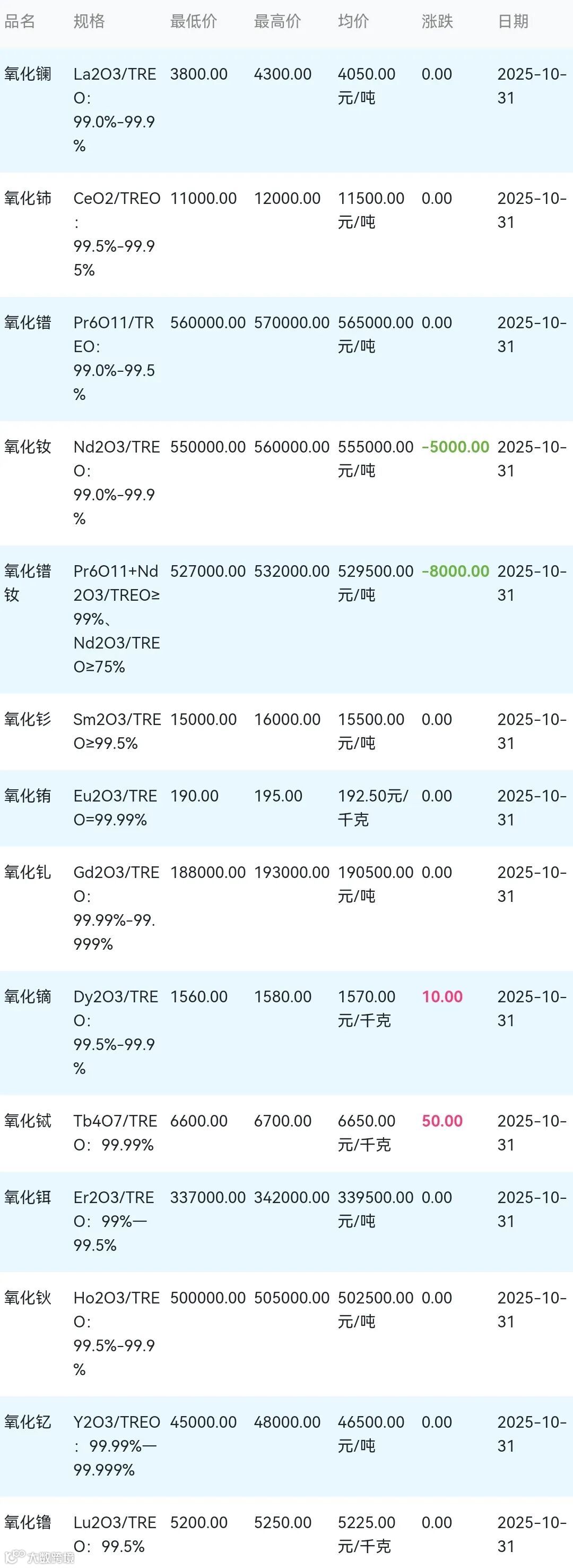 2025年10月31日稀土氧化物材料市场参考价:
