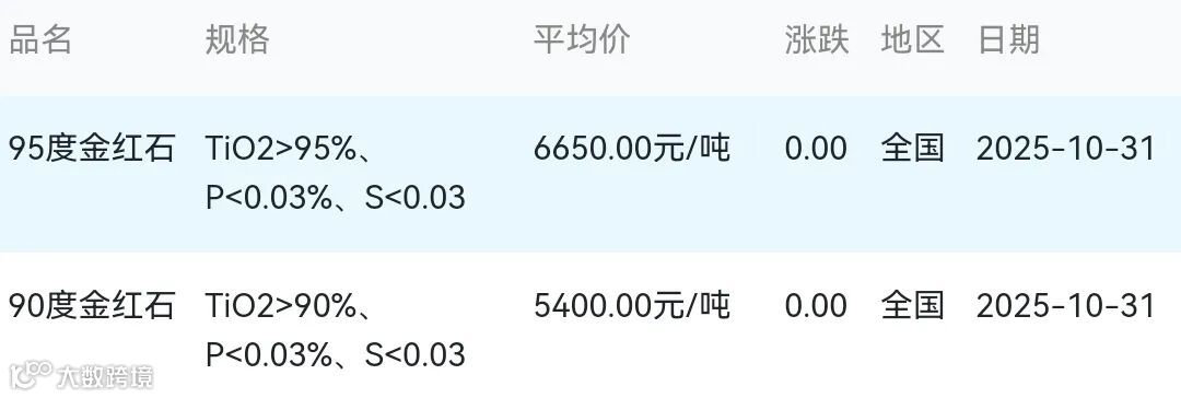 2025年10月31日金红石材料市场参考价: