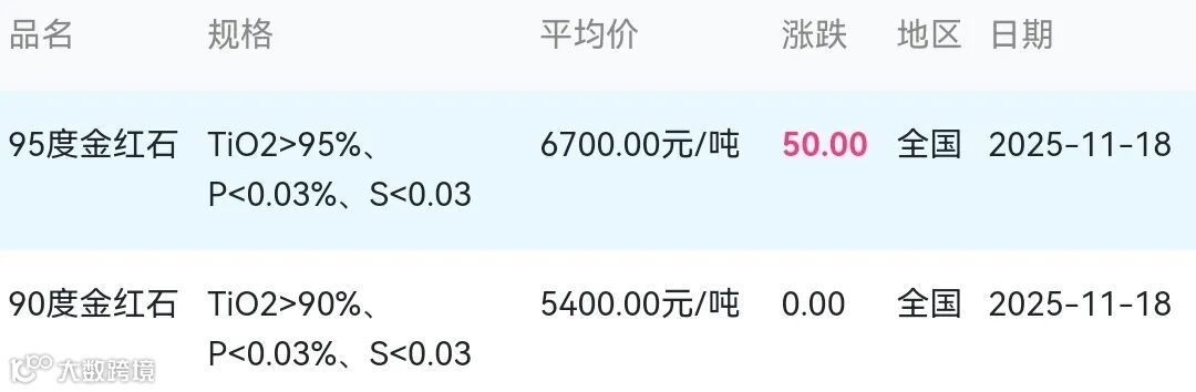 2025年11月18日金红石材料市场参考价: