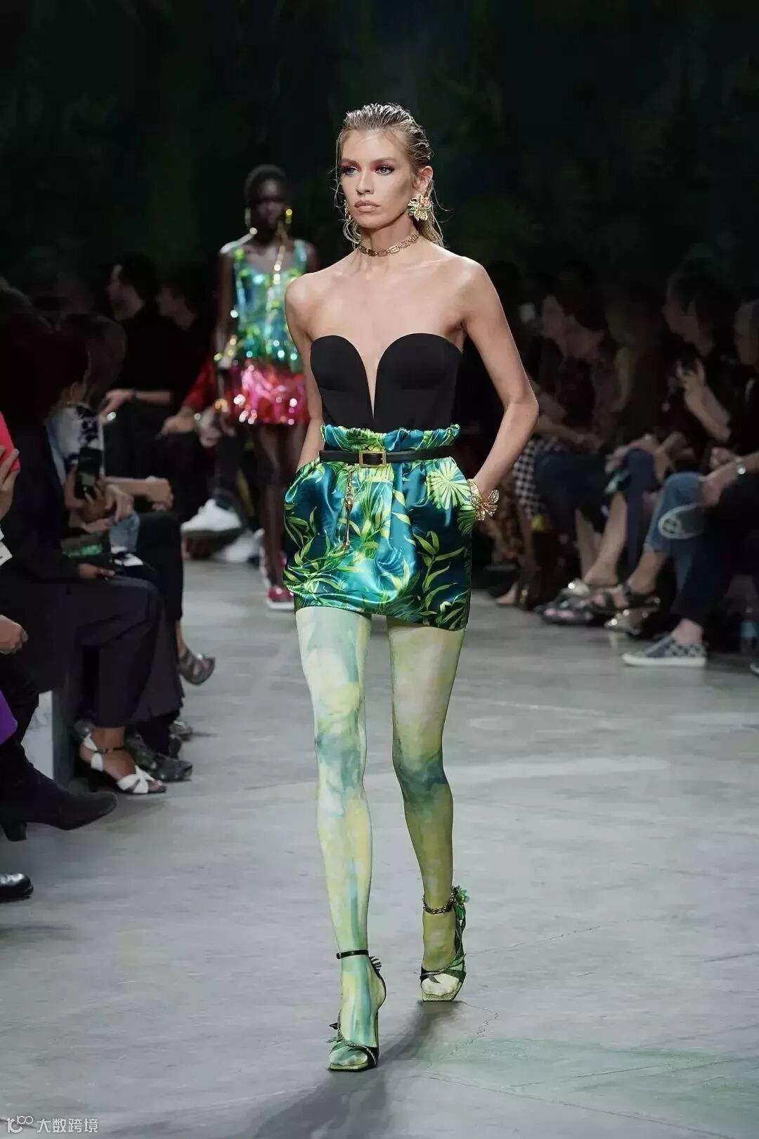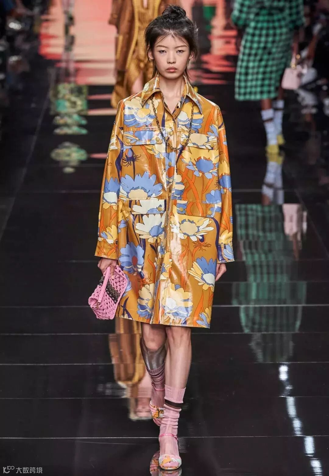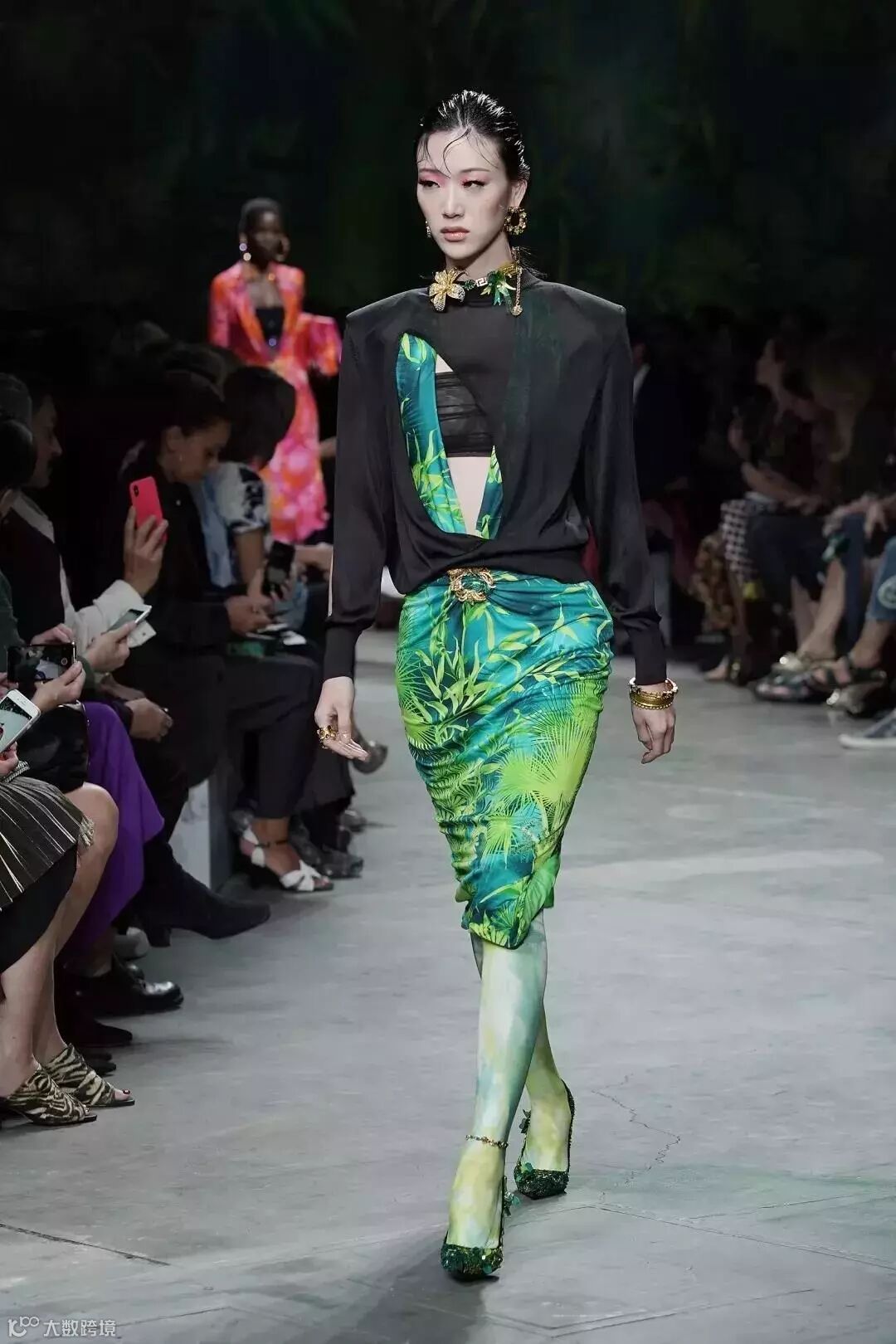 同样把森林系的植入运用到设计上的还有范思哲(Versace)。在2020春夏系列中,范思哲和谷歌合作,将技术、古典主义与时尚融合,用鲜艳色彩和饰有丛林细节的印花元素,为新系列带来了新的技术与革新。
