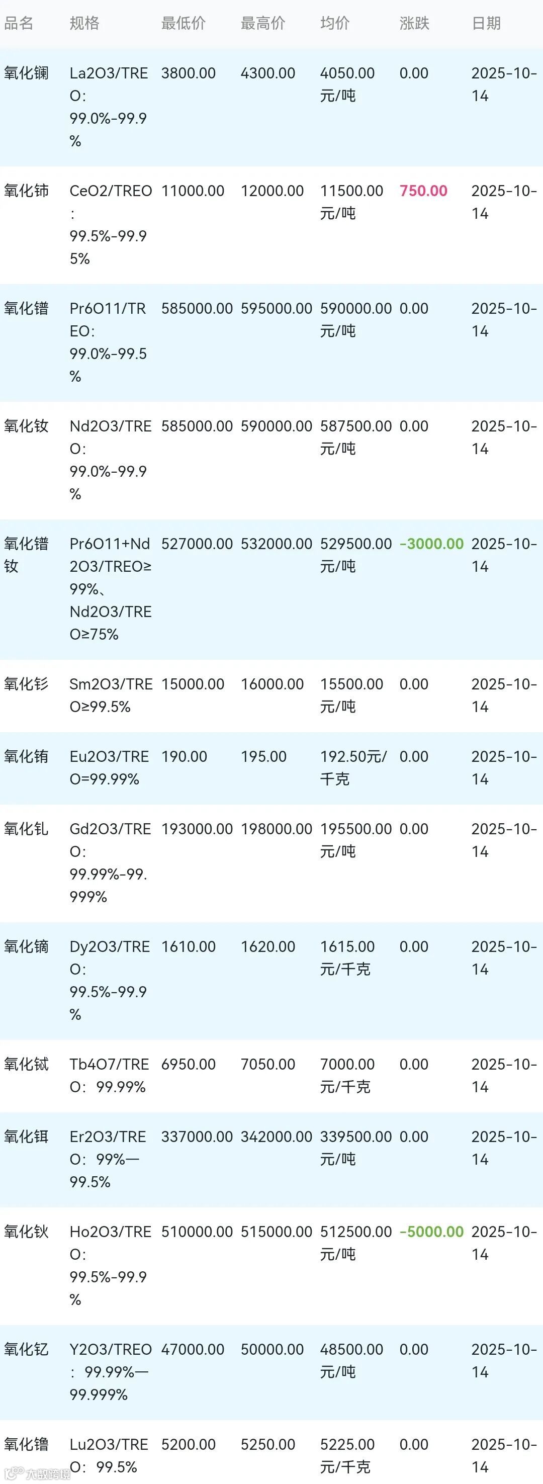 2025年10月14日稀土氧化物材料市场参考价: