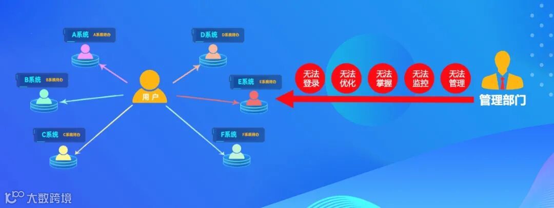 没有统一办理的窗口,用户需要登录不同的系统查询、办理自己的工作;各系统的待办界面五花八门,操作习惯迥异,工作非常不便。
