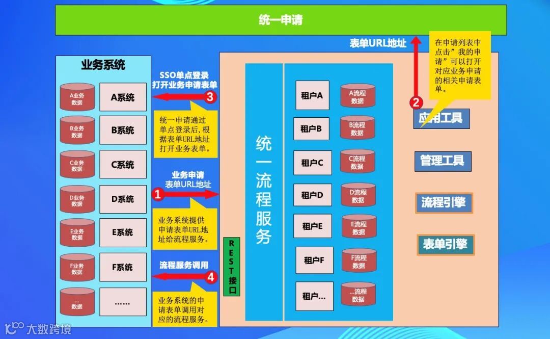 流程服务存储有所有业务系统的流程数据和表单URL地址,是统一待办的数据支撑。