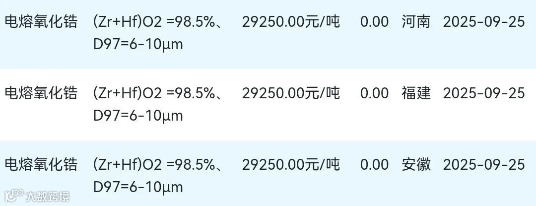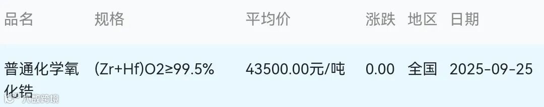 2025年09月25日氧化锆材料市场参考价: