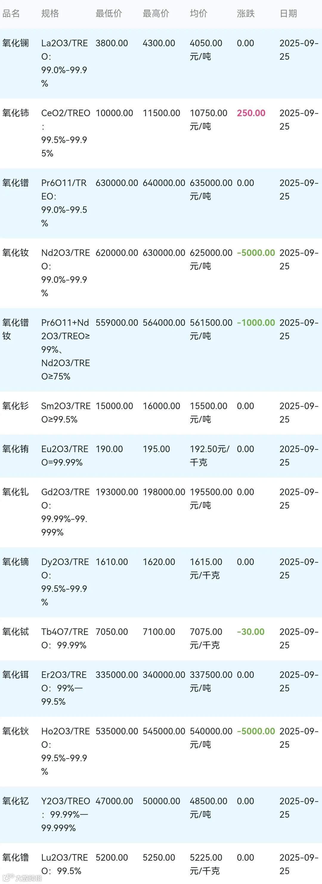 2025年09月25日稀土氧化物材料市场参考价: