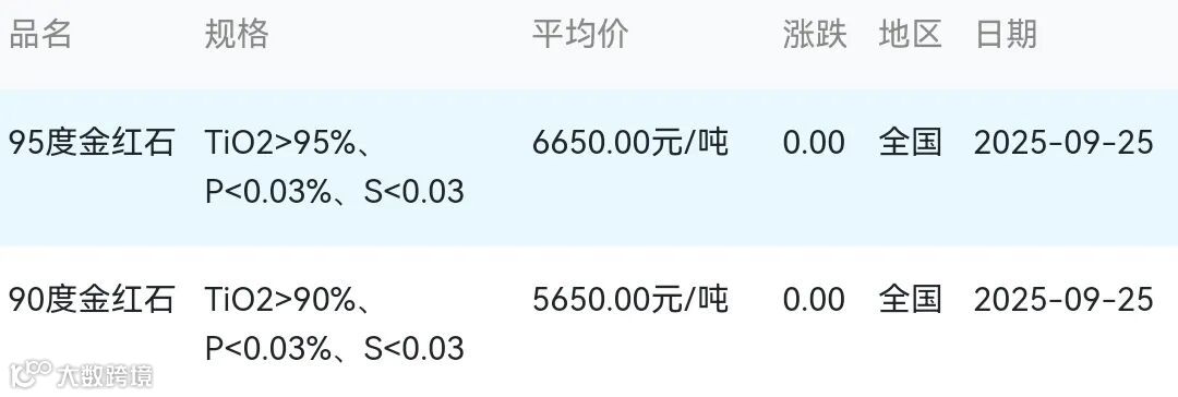 2025年09月25日金红石材料市场参考价: