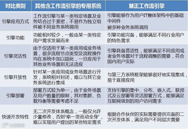 慧正工作流引擎对比分析