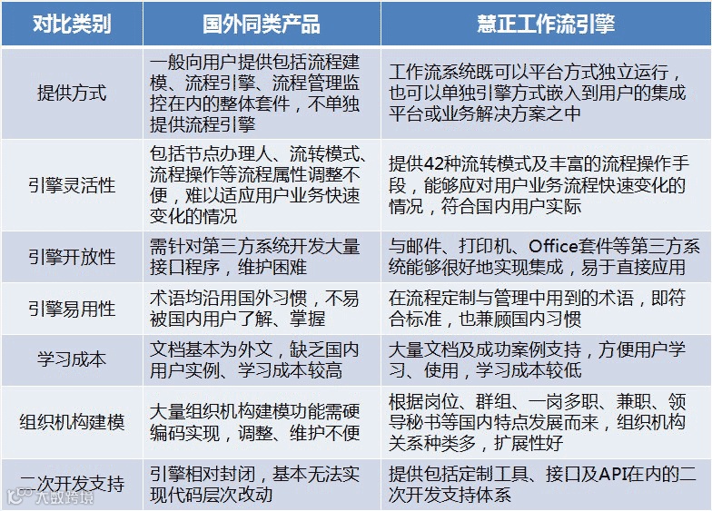慧正工作流引擎与国外同类产品对比