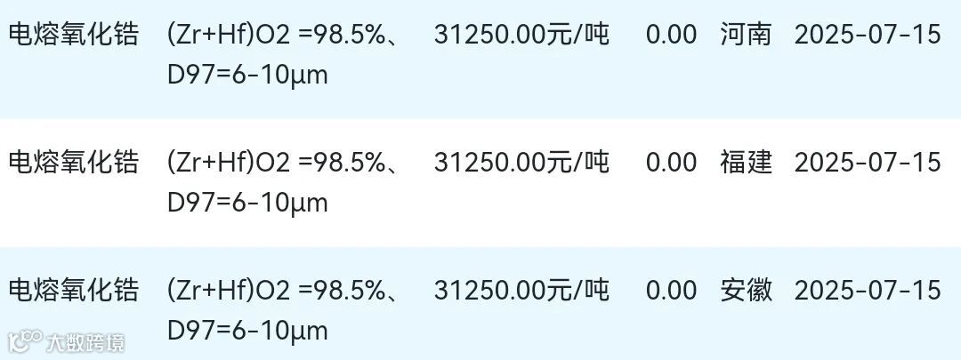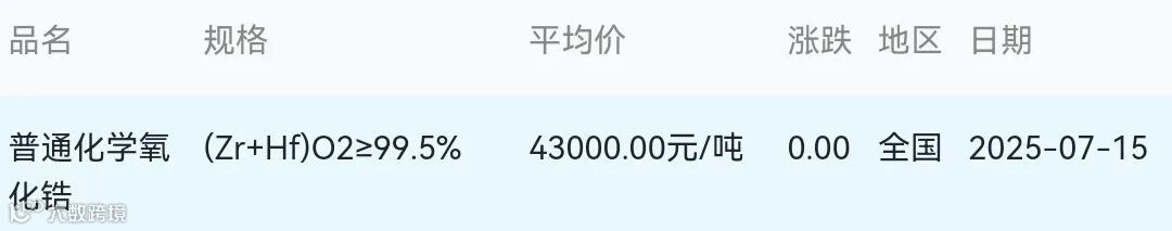 2025年07月15日氧化锆材料市场参考价: